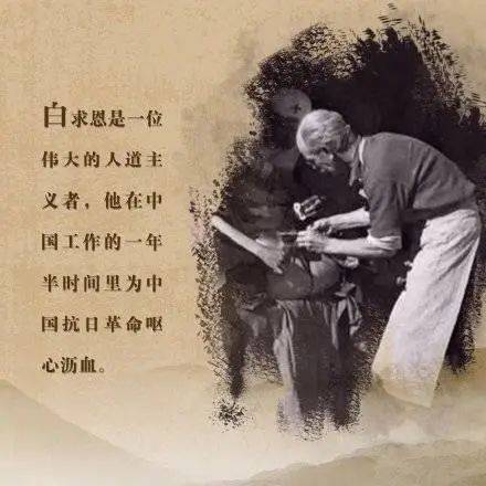 在晋察冀边区,白求恩时刻不忘八路军伤病员的痛苦,时刻不忘在硝烟战火中缺医少药的人民群众的艰难。他带领医疗队奔赴抗日战争的最前线,始终强调一个口号:“到前线去,到伤员那儿去。哪里有伤员,我们就到哪里去。”他常说:“在一切的事情当中,要把病人放在最前头,倘若你不把他们看得重于自己,那么你就不配在卫生部门工作。”在五台山区,他和医疗队每到一个村子,就立刻布置手术室,争取一切可能的时间救治伤员,给外科伤员做手术,想尽一切办法减轻他们的痛苦。他带着助手挨家逐户地为分散在老百姓家中的伤病员诊疗。他开创了我军战地输血的先河,多次在急救中为伤员献血。他还把村民们召集起来,给他们讲授医疗卫生知识。他为村民们送医送药,给老人和孩子检查身体。这位“洋大夫”的关心体贴,像冬日暖阳温暖着根据地的乡亲们,感动着身边的每一个人。白求恩和他的医疗队每到一处,都会受到当地群众亲人般的欢迎。白求恩用他毫不利己、专门利人的实际行动,弘扬着共产主义精神,讲述着反法西斯斗争中大爱无疆的故事。