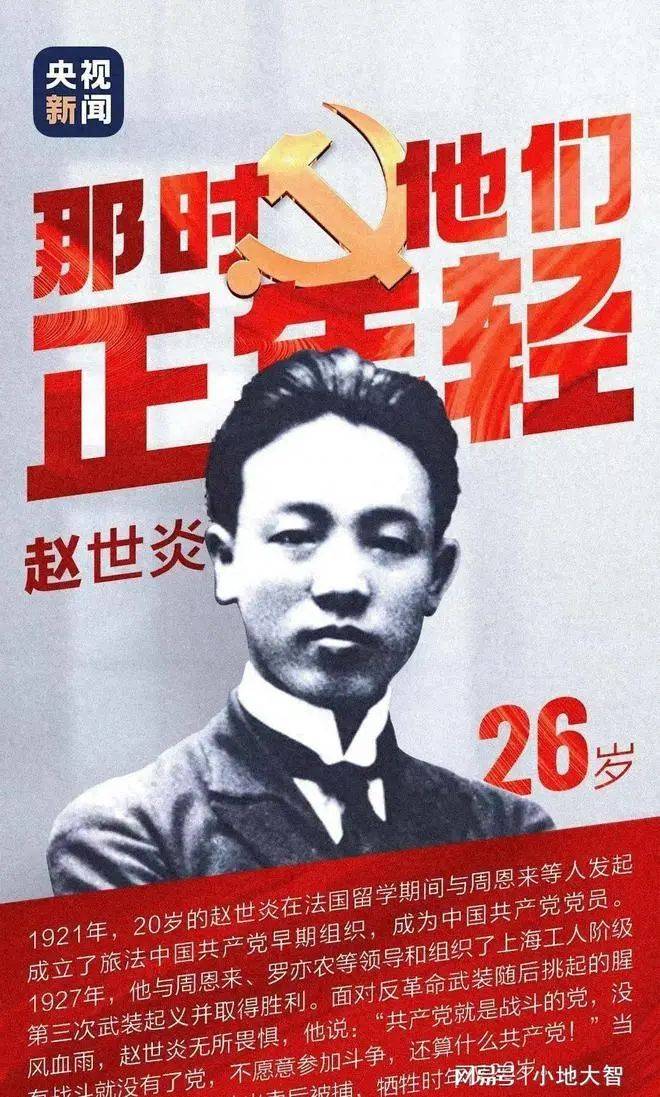 赵世炎出生在四川酉阳(今重庆市酉阳土家族苗族自治县)的富商家庭,受家庭和小学老师影响,年少读书时便十分关心国家和民族的命运,14岁便以优异成绩进入北京高等师范学校附属中学读书。其间正值新文化运动,赵世炎积极投身于各类演讲会。在此,他结识了革命先驱李大钊,随即加入少年中国学会。“五四运动”爆发后,他组织带领身边的进步青年,走上街头为国发声。1920年,为寻求救国救民的真理,赵世炎远渡重洋赴法国勤工俭学,每天在做工之余,借着夕阳拼命读书,分秒必争。1922年,赵世炎与张申府、周恩来等人发起成立中共旅欧支部。1923年,赵世炎转往莫斯科东方劳动者共产主义大学学习。在海外长期的学习、交往和革命活动中,赵世炎逐渐认定马克思主义是无产阶级革命的唯一真理,成为了一名真正的共产主义战士。