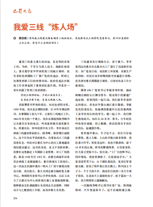 本文载《巴蜀史志》2024年第5期“三线建设专刊”
