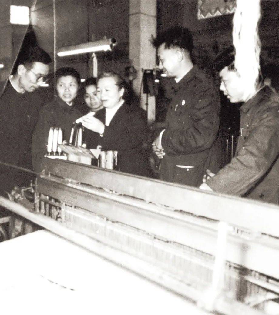 1960年4月,张琴秋在浙江考察杭州丝绸印染联合厂(浙江省桐乡市档案馆 藏)