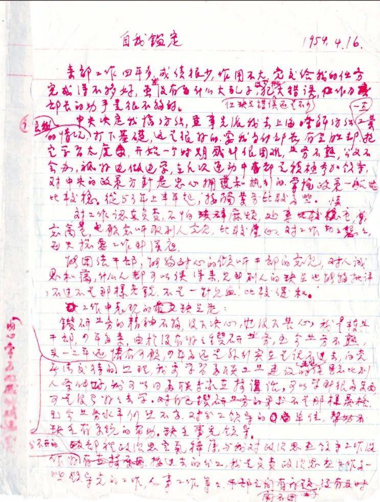 1954年4月16日,张琴秋撰写的《自我鉴定》(部分)(浙江省桐乡市档案馆藏 )