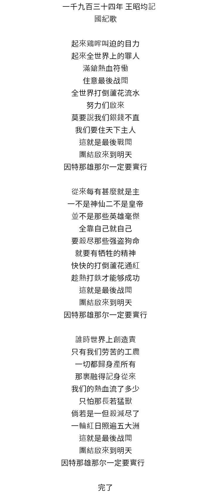 附:王昭均手抄版《国际歌》词&1926年国民革命军版《国际歌》词