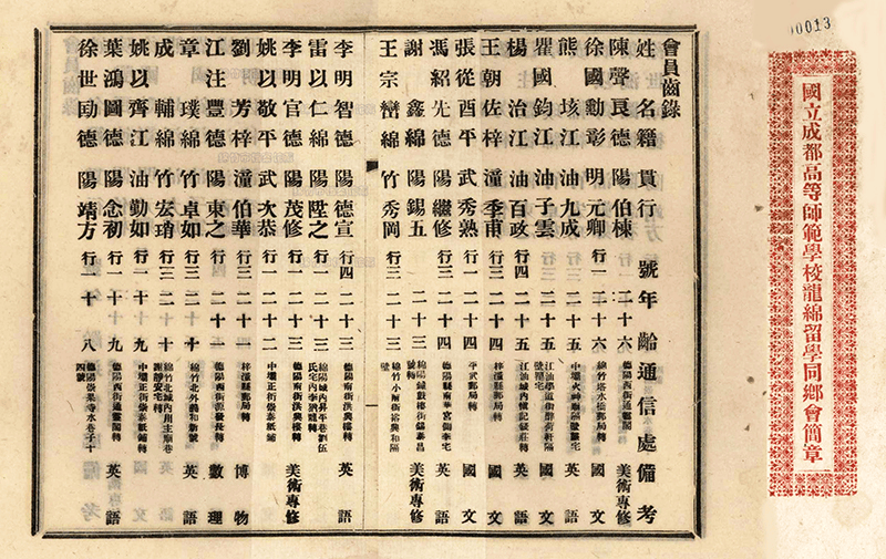 1919年国立成都高等师范学校龙绵留学会同乡会简章(绵竹市档案馆 藏)