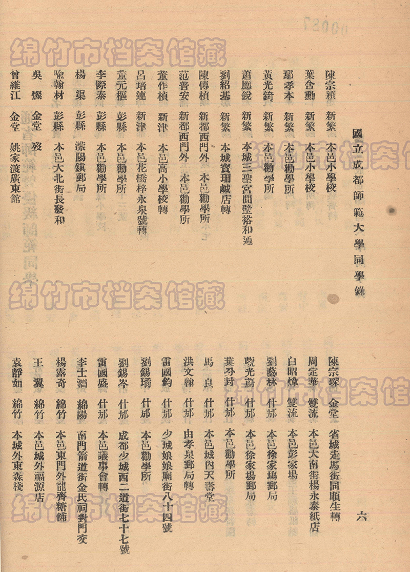 王翼(即王干青)1915年国立师范大学同学录(绵竹市档案馆 藏)