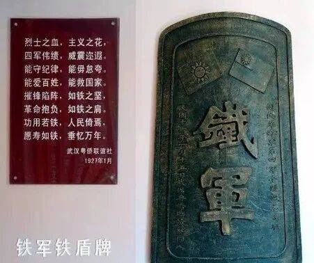 在北伐战争中,独立团英勇善战,威震长江南北,其所在的第四军也被誉为“铁军”。当时,武汉粤侨联谊社特意在武汉兵工厂铸造了刻有“铁军”字样的盾牌赠送给将士们。叶挺独立团参加了授牌仪式,叶挺代表四军接受了铁军盾牌。这正是后来我们传颂的“铁军”精神的来由。