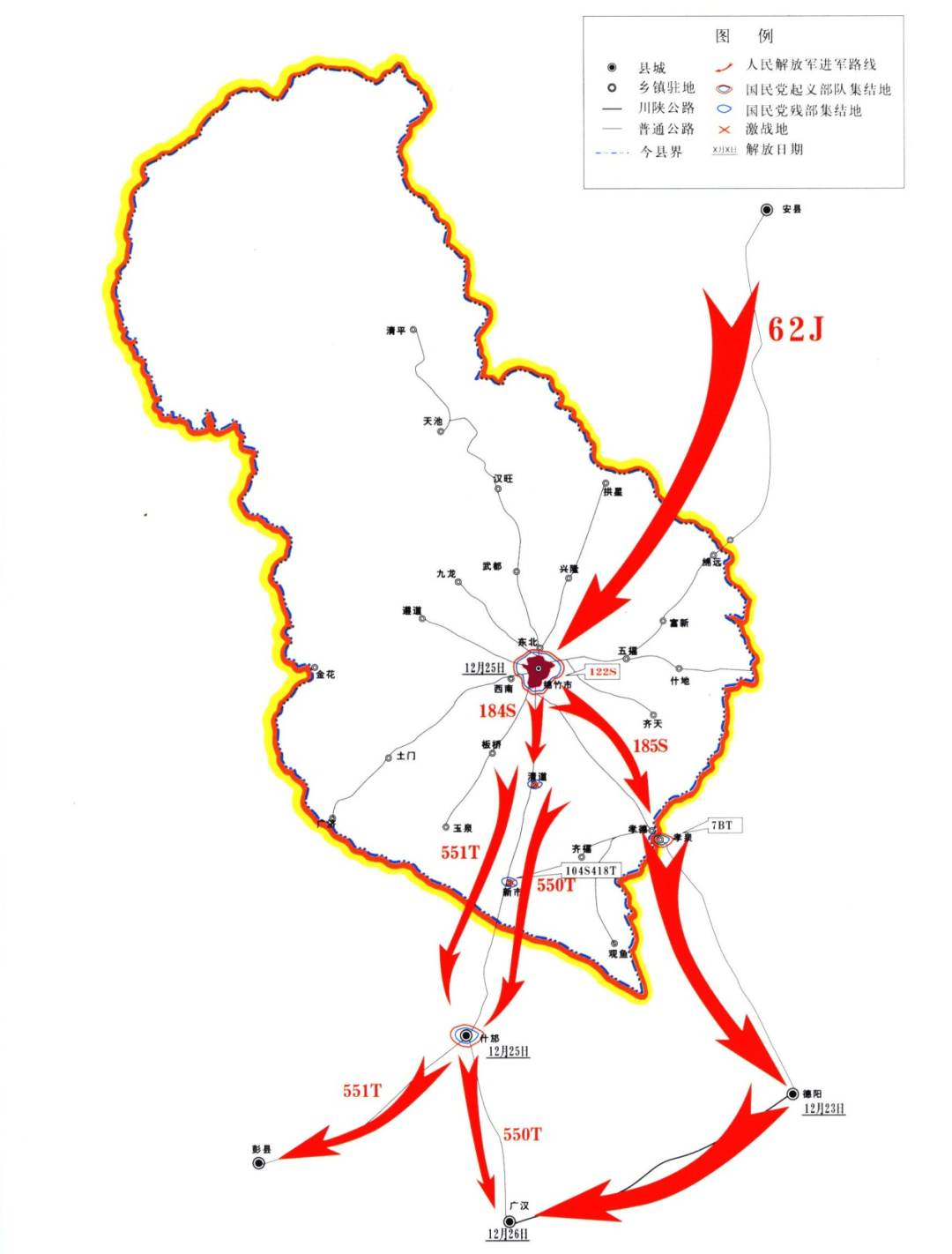 1949年11月,中国人民解放军第二野战军、华北野战军第十八兵团和第一野战军一部共同挺进大西南。12月24日,人民解放军62军184师550团、551团于进抵绵竹东郊。在强大的政治、军事攻势和中国共产党的政策感召下,12月25日拂晓,绵竹县长兼地方自卫团司令刘玉杰与122师师长熊顺义、安绵什罗茂山防总队队长夏骑风及原成都市长乔诚(绵竹人)商定,联名通电投诚起义。