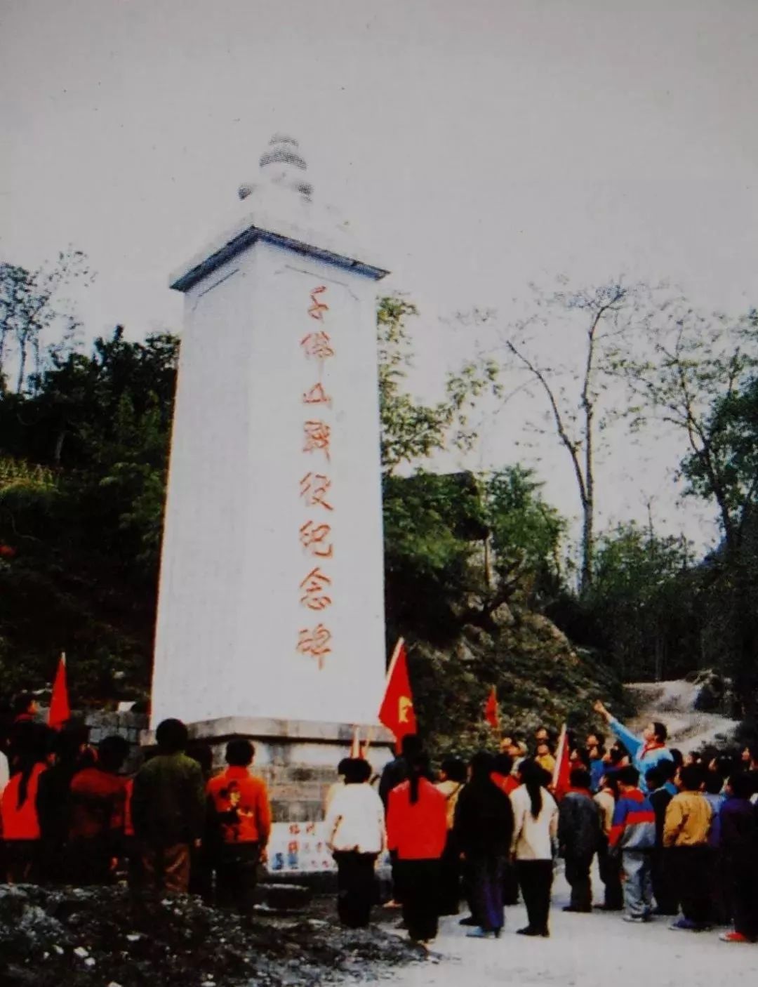 位于墩上的千佛山战役纪念碑,其南面山坡上的岭岗村,就是安登榜当年参加红军的地方