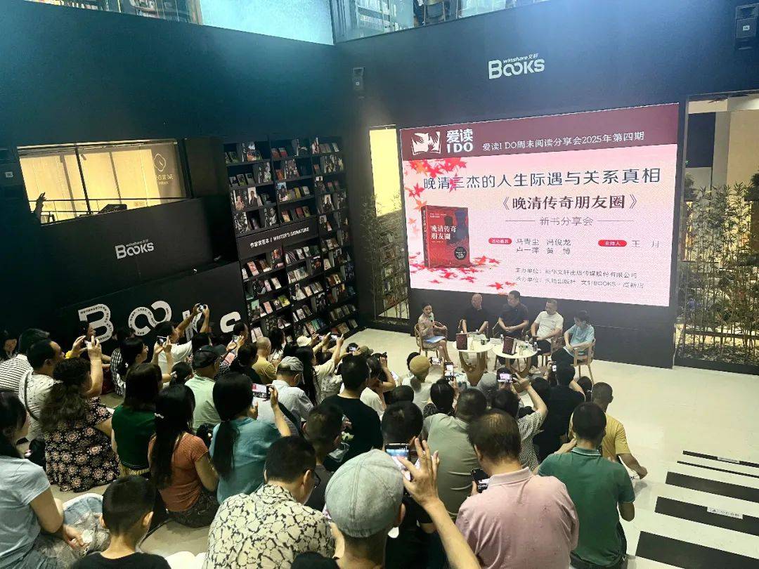 2025年6月15日下午,新华文轩出版传媒股份有限公司主办,天地出版社、文轩BOOKS•高新店承办的爱读I DO周末阅读分享会2025年第4期活动在文轩BOOKS•高新店举行。本次分享会聚焦新书《晚清传奇朋友圈》,该书作者马青尘、冯俊龙携手成都市作协副主席卢一萍、四川大学历史文化学院副教授黄博,在一个多小时的活动时间里,以对谈的形式分享了《晚清传奇朋友圈》的写作缘起、出版价值和现实意义等,给到场的一百多名热心读者献上了一场精彩的思想盛宴。