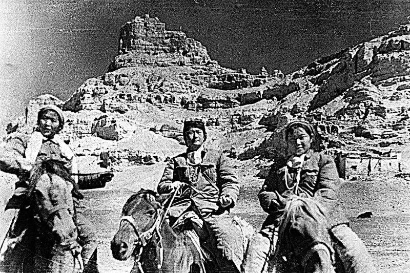 1959年在奔赴雪域高原边防哨卡慰问演出途中,中间为庄志军女士,左一为本文作者母亲。