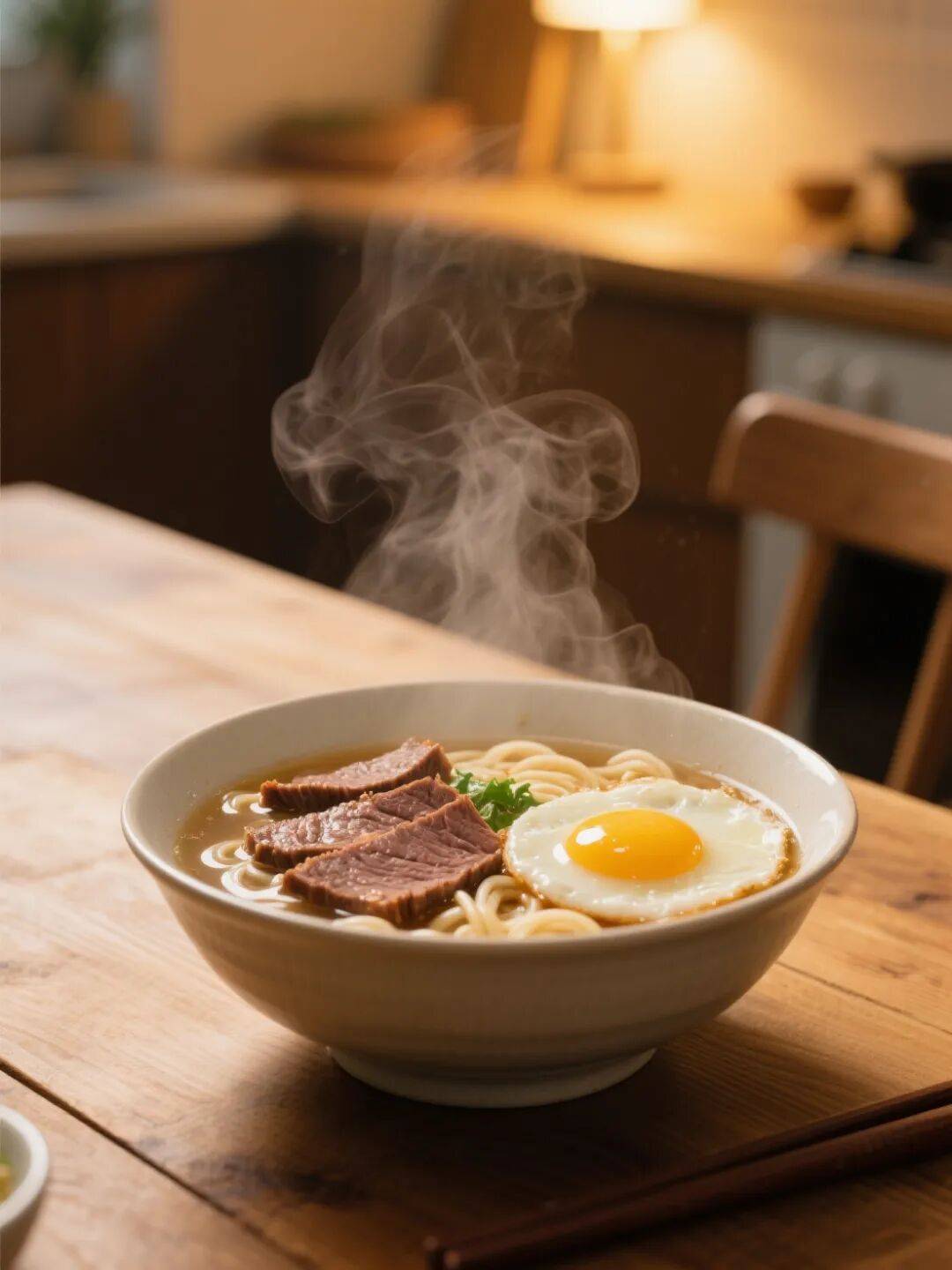 餐桌上,一碗牛肉面正静静地冒着热气,那是独属于我的特供。汤汁清澈中泛着油光,牛肉片切得整整齐齐,旁边还卧着一个荷包蛋,蛋黄微微颤动,像在朝我眨眼。