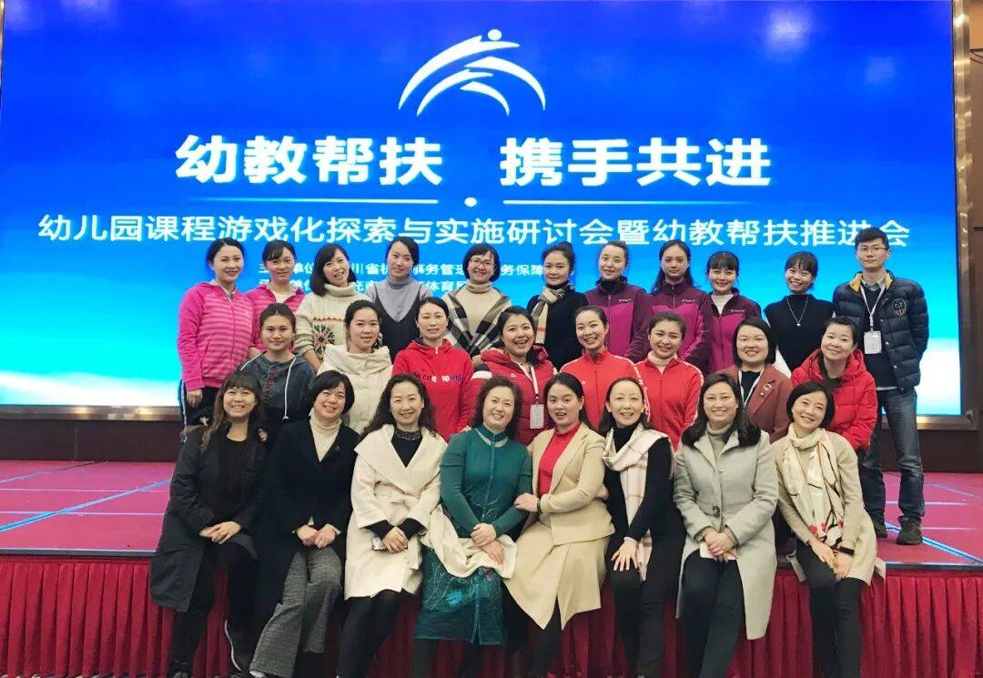 2018年11月30日,四川省机关事务管理局在南充市高坪区召开幼儿园课程游戏化探索与实施研讨会暨幼教帮扶推进会。前排右四为本文作者(供图:四川省直属机关西马棚幼儿园 兰晶)