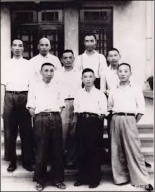 1950年2月,川北行署党委部分成员合影(前排左起:赵林、胡耀邦、李登瀛,后排左起:李林枝、刘聚奎、秦仲方、董弼忱、饶兴,桑宜川 供图)