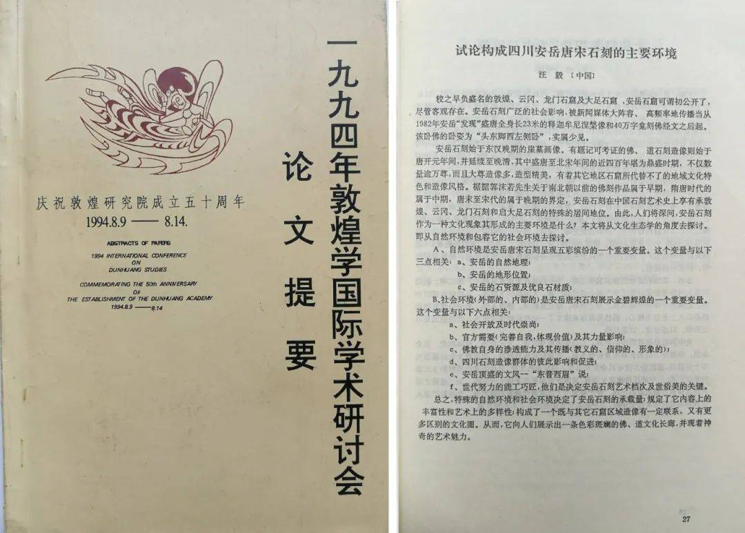 《试论构成四川安岳石刻的主要环境》汪毅文,载一九九四年敦煌学国际学术研讨会《论文提要》。为第二次把安岳石刻推向国际学术论坛。