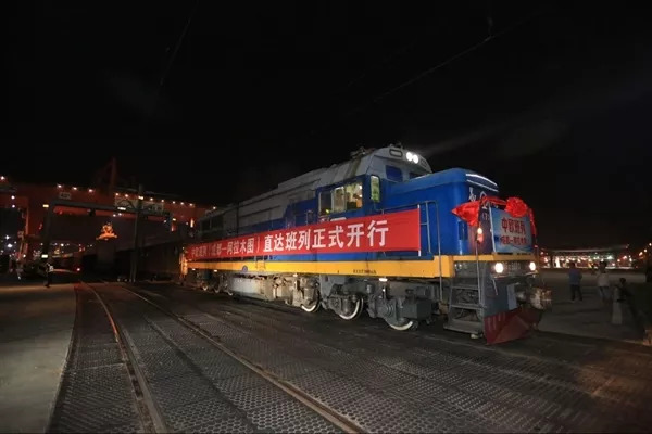 2018年8月22日23:30,伴随着嘹亮的汽笛鸣响,一列满载着空调、电梯及挖掘设施设备的班列缓缓从成都青白江城厢中心站驶出,标志着中欧班列(成都)直达阿拉木图班列正式开行(图片来源:四川在线)