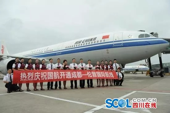 2018年7月3日下午15:45分,随着国航CA423航班载着275名乘客从成都双流国际机场起飞,成都直飞伦敦航线正式复航,首航客座率高达95%(图片来源:四川在线)