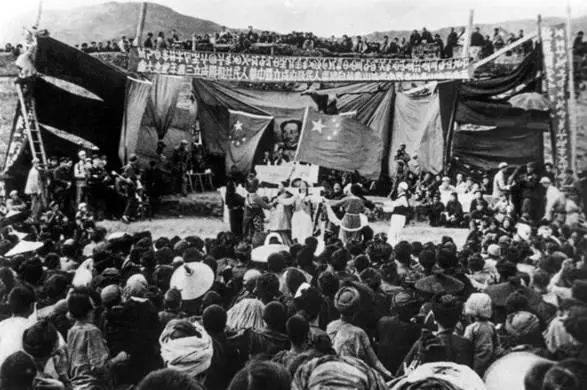 1952年10月8日,凉山各族人民在昭觉县城庆祝中华人民共和国成立三周年暨西康省凉山彝族自治区人民政府成立(郭建良 供图)