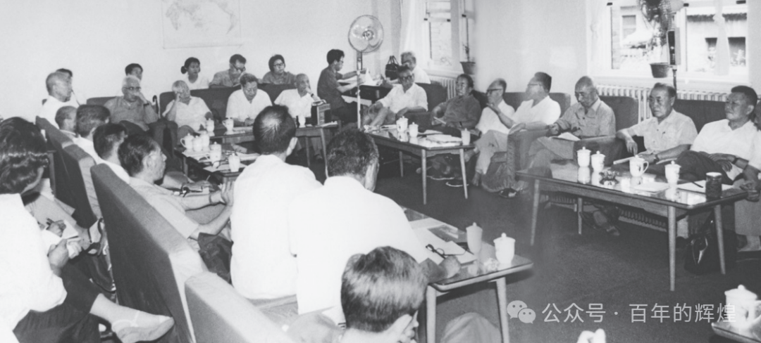 1980年春天,谷牧(右排右四)在广州主持召开广东、福建两省工作座谈会。