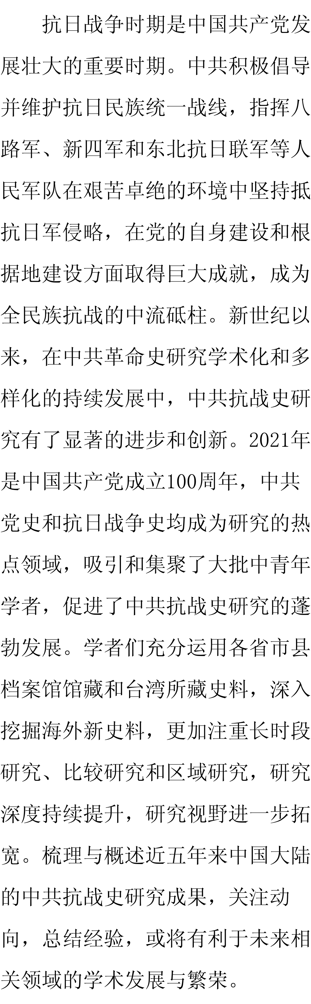 【纪念抗战胜利80周年】近五年来中共抗战史研究的回顾与展望||吴敏超