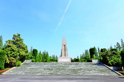 位于江苏宿迁泗洪县的朱家岗烈士陵园内,烈士纪念碑高高矗立。泗洪县委宣传部供图