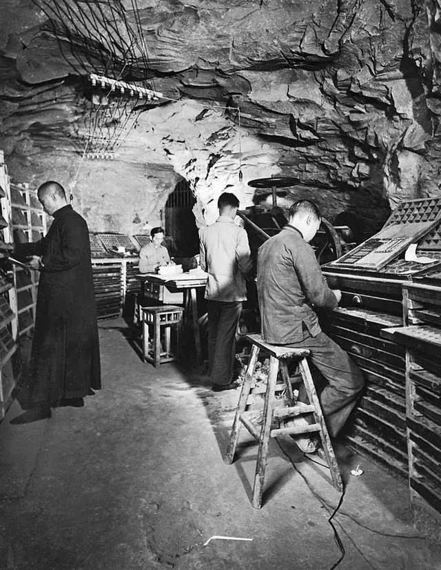 报社员工在防空洞里坚持出报(图源:重庆日报)