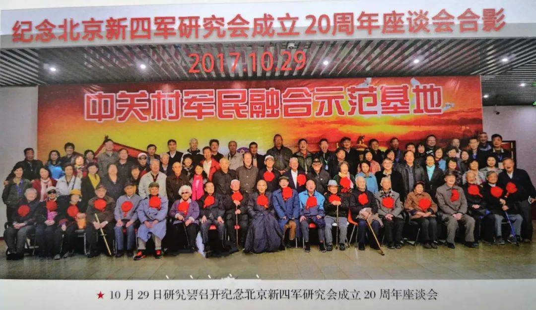 2017年10月,纪念北京新四军研究会成立20周年新四军老战士合影(前排左七为郑英)