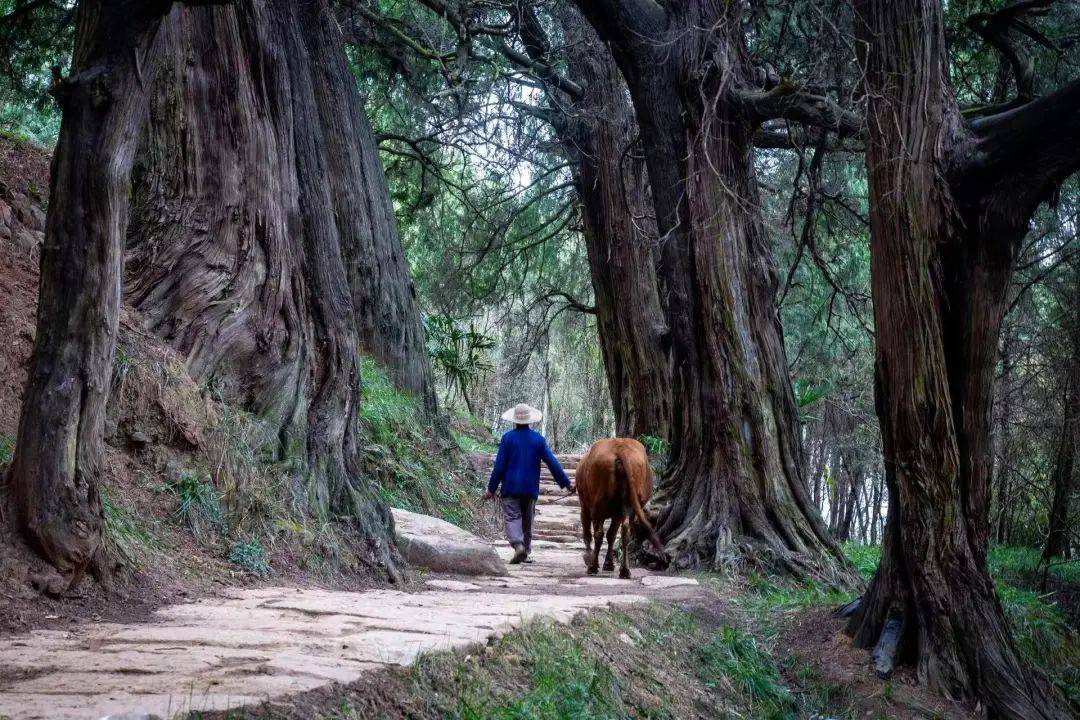 行走剑南古道,不免有个疑问,为何1997年翠云廊普查时说“剑阁圈龙以南没树”。翠云廊南线最南的那株古柏在白龙镇先锋村老土地,编号是:No.南04192,从这里往南,也就是剑州至阆中差不多一半驿道上没有古树了。公兴、涂山、思依一带也有很多古树,但多分布在寺观、堡寨、宗祠、坟茔、场镇,不在古道两旁为行旅遮荫避雨,也不能起到保护路基作用,不是本文说的范围。