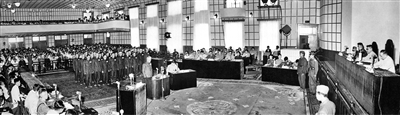 中华人民共和国最高人民法院特别军事法庭在沈阳审判战犯。“九·一八”历史博物馆供图