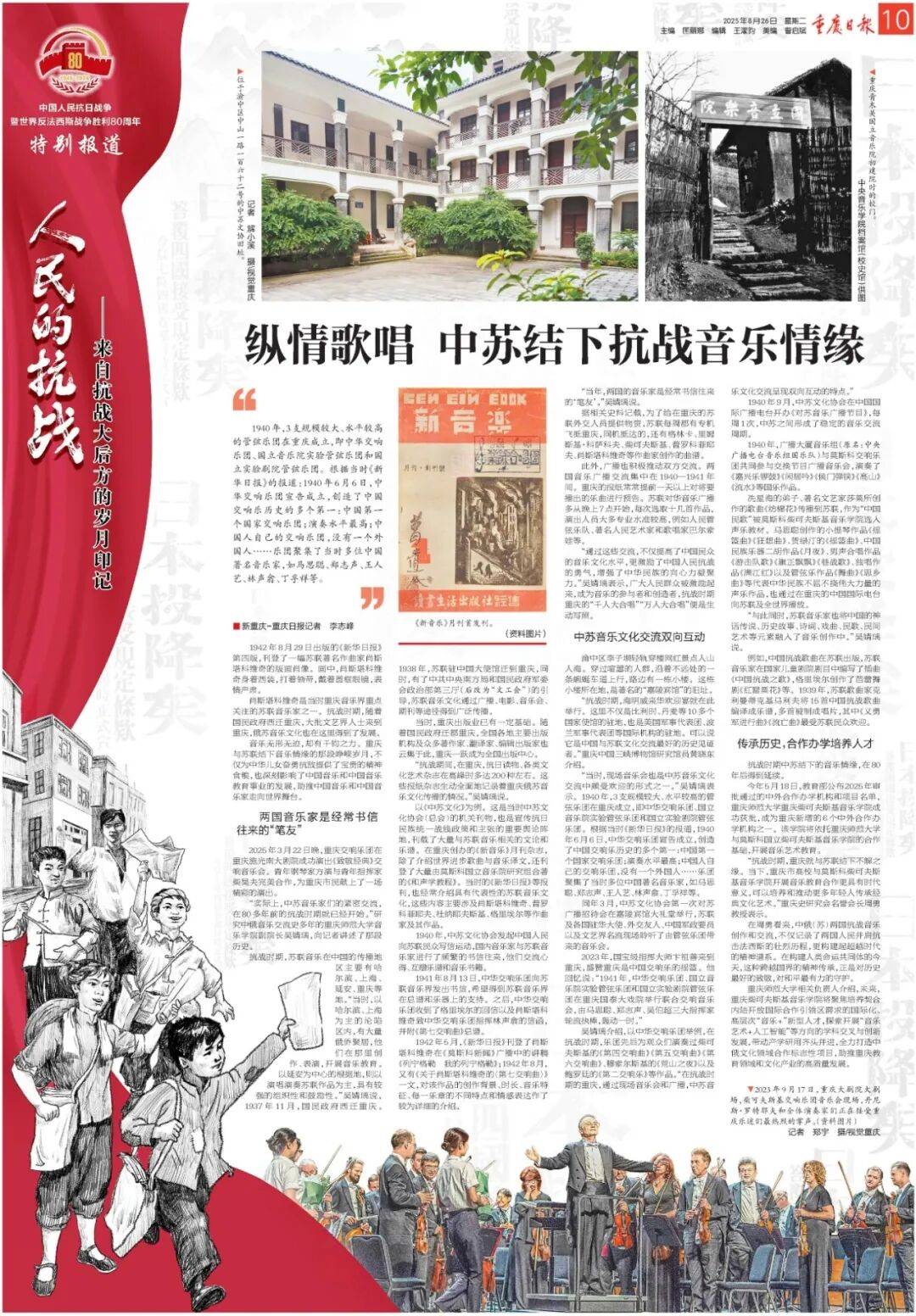 在周勇看来,中俄(苏)两国抗战音乐创作和交流,不仅记录了两国人民并肩抗击法西斯的壮烈历程,更构建起超越时代的精神谱系。在构建人类命运共同体的今天,这种跨越国界的精神传承,正是对历史最好的致敬,对和平最有力的守护。