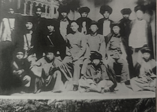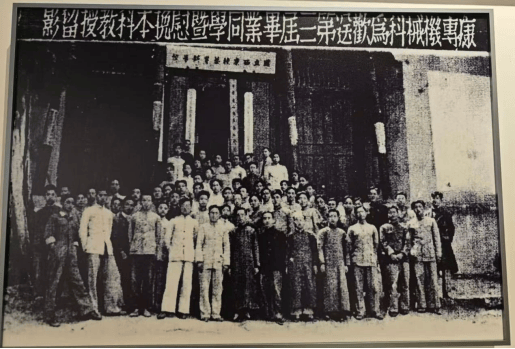 康专师生合影——背景为康专教室、图书馆(光福寺大雄宝殿)(图源:西昌学院校史馆,罗瑾翻拍)