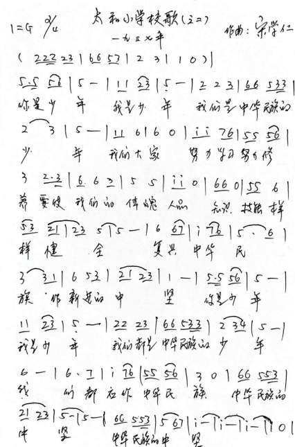 西昌地区5所百年老小学之一的太和小学,本有校歌。抗战开始,即在1937年重新编写了抗战校歌: