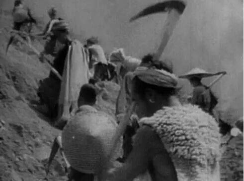彝族民工在修筑乐西公路(图源:《民族万岁》)