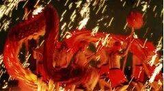 正月十五晚上是节日高潮:爆竹声声,烟花四起,与人的呐喊声响成一片;火花在龙身、人身上蹦跳一片火的海洋,烟的世界,光的幻影。舞龙人尽兴表演,祈求来年风调雨顺,五谷丰登,幸福美满。
