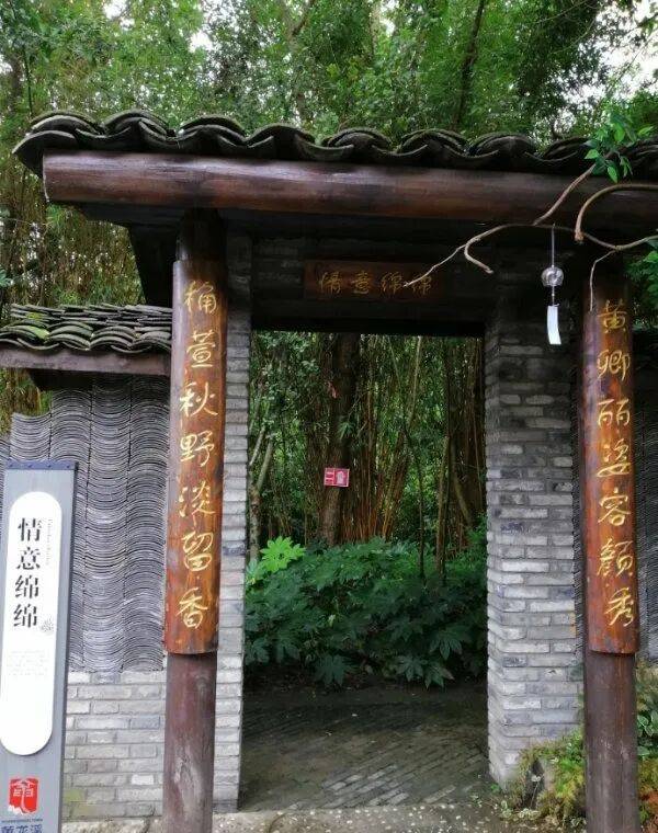 走进古镇不远处,见到一个院子。大门两侧的对联内容是:黄卿丽姿容颜秀,桷萱秋野淡留香。横批:情意绵绵。