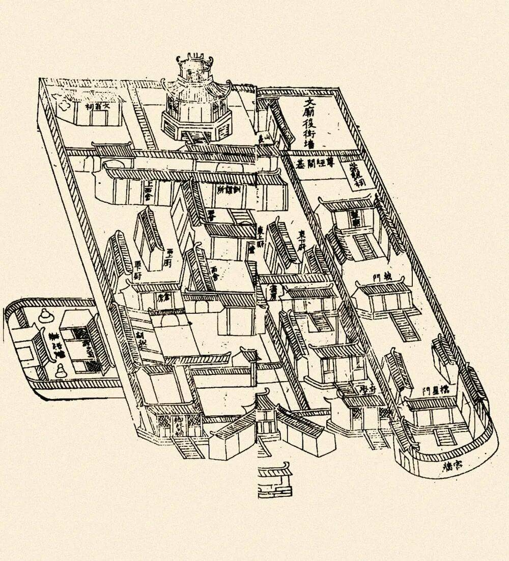 没错,此处正是成都府文庙,是明清时期成都城内三座文庙之一。而文庙紧靠锦江书院,其实正反映了中国古代一种特有的教育规制——庙学合一。“庙学合一”的核心特征是将孔庙(文庙)的祭祀空间与官办学校合二为一,形成“前庙后学”或“左庙右学”的建筑布局,实现功能融合。