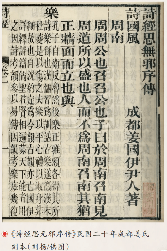 《诗经思无邪序传》4卷现存的版本主要有两种:一种是清同治光绪年间刻本,存于四川大学图书馆;另一种是民国20年(1931)成都姜氏刻本,存于复旦大学图书馆。