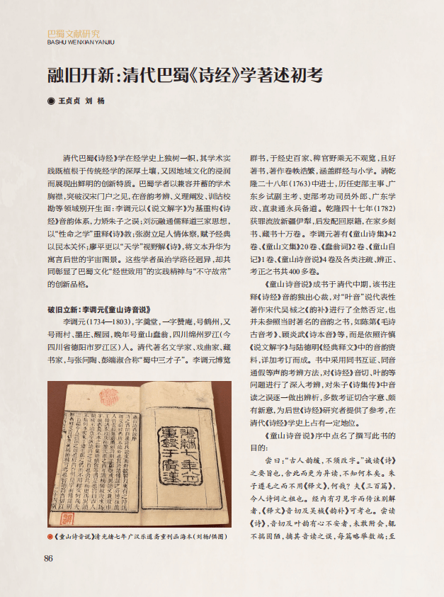 【文史英华】融旧开新:清代巴蜀《诗经》学著述初考‖王贞贞 刘杨