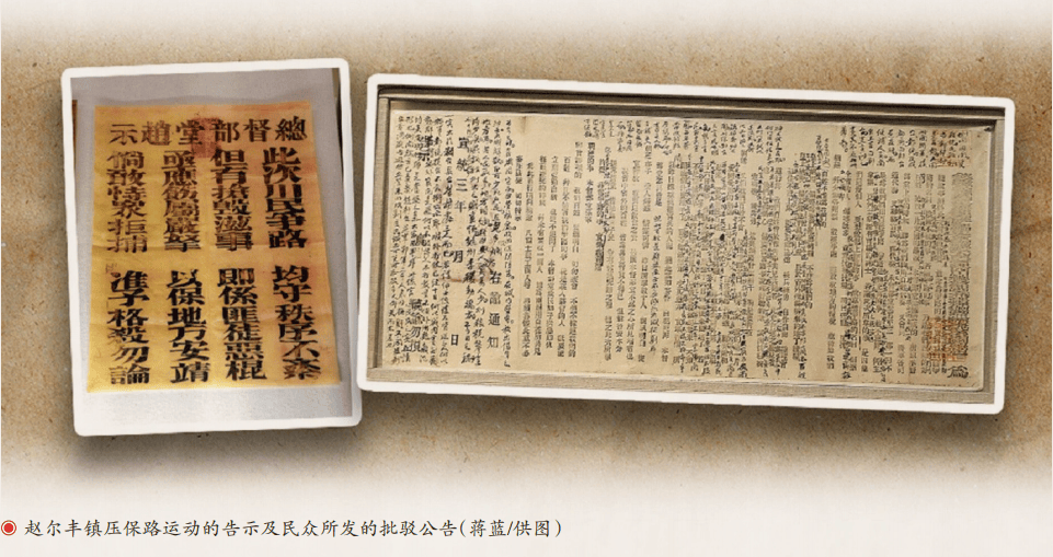 “水电报”投放锦江几天后,清政府下令严禁传播“水电报”,殊不知这个禁令,不仅激起了民众更大的愤恨,还加速了“水电报”传播的广度与深度。1910年10月,成都保路风潮大起,全省各界发动。湖北黄冈籍的先行者刘子通以学生请愿会议的名义,通电全国:“一律罢课,不达目的,誓不罢休。”足以彰显“木牌檄文”一词的本质。因为各地民众还将“水电报”的信息制成传单散发、张贴,鼓励群众武装起义,实现了四川历史上有史以来多种传播载体的最大一次汇聚。