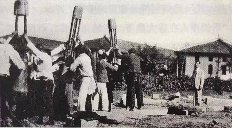 苏继贤(右边站立者)在修建工地现场指挥(图源:《蛇杖华西坝》)