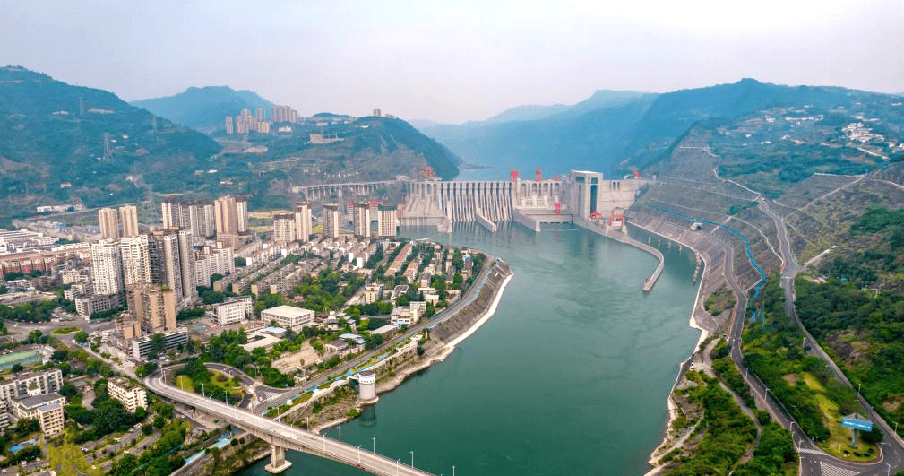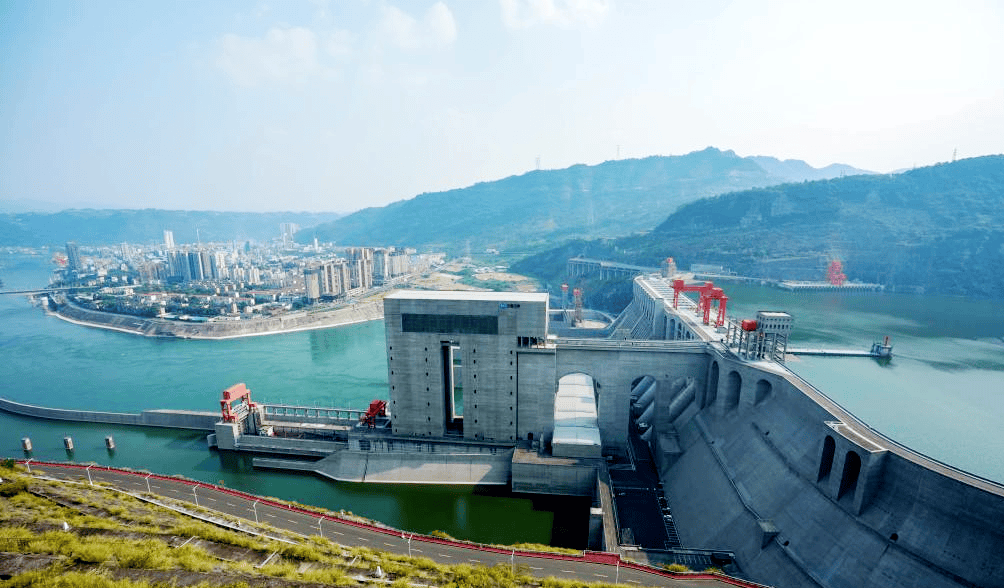 2024年8月29日拍摄的向家坝水电站,远处是水富市城区(新华社记者 陈欣波 摄,图源:新华社)