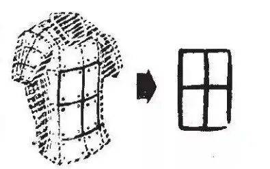 四川博物院称之为“网格状的图像符号”,其实为“甲”,是一件解下来、展开放置的皮质铠甲。“网格状的图像符号”总体呈“十”字造型,《说文解字》云:“古文甲,始于十。”“甲”在商代甲骨文到战国金文时期都写作“十”。“甲”通常被认为是象形字,最早的铠甲是将牛皮之类的皮革,裁剪成一块块皮革片,然后在片上穿孔,用绳串联后编成铠甲。甲片之间呈一个个“十”字形。林义光《文源》云:“甲者皮开裂也,十象其裂文。”基本上也是这个意思。总体呈十(甲)字造型的“网格状的图像符号”上也布满了一个个皮质甲片之间形成的“十”字型,因此是为铠甲之意,将其解下来展开放置,应为解甲休战,也是表达和平之意。据此可以推测甲两边的两口铎,应为象征鸣金收兵的“金铎”。