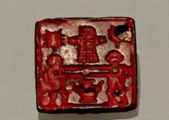 在此墓中出土的大量精美文物中,有一颗巴蜀符号铜印最为瞩目,四川博物院称其为“是目前发现的等级最高的巴蜀铜印”,被认为是战国时期古蜀王生前使用的印玺。四川博物院对这颗等级最高的巴蜀铜印描述是:“这枚印章呈正方形,边长约为3.5厘米,高1.4厘米。印背中心置有桥形钮,钮两侧对称雕刻着浅浮雕饕餮纹,展现出庄重而神秘的气息。”“再来看印章的印面。与我们平常见到的印章不同,这枚印章印面雕刻的并非文字,而是一组神秘的图形符号——下部两侧各立一人,光头大耳,伸手相握,手下置一罍(léi);两人上方各有一口向上的铎(duó),中间则有一网格状的图像符号。”这颗铜印的出土地,成都市新都区马家战国王级大墓,距成都市成华区羊子山古蜀祭祀台也就是“成台”的直线距离,不超过20公里。