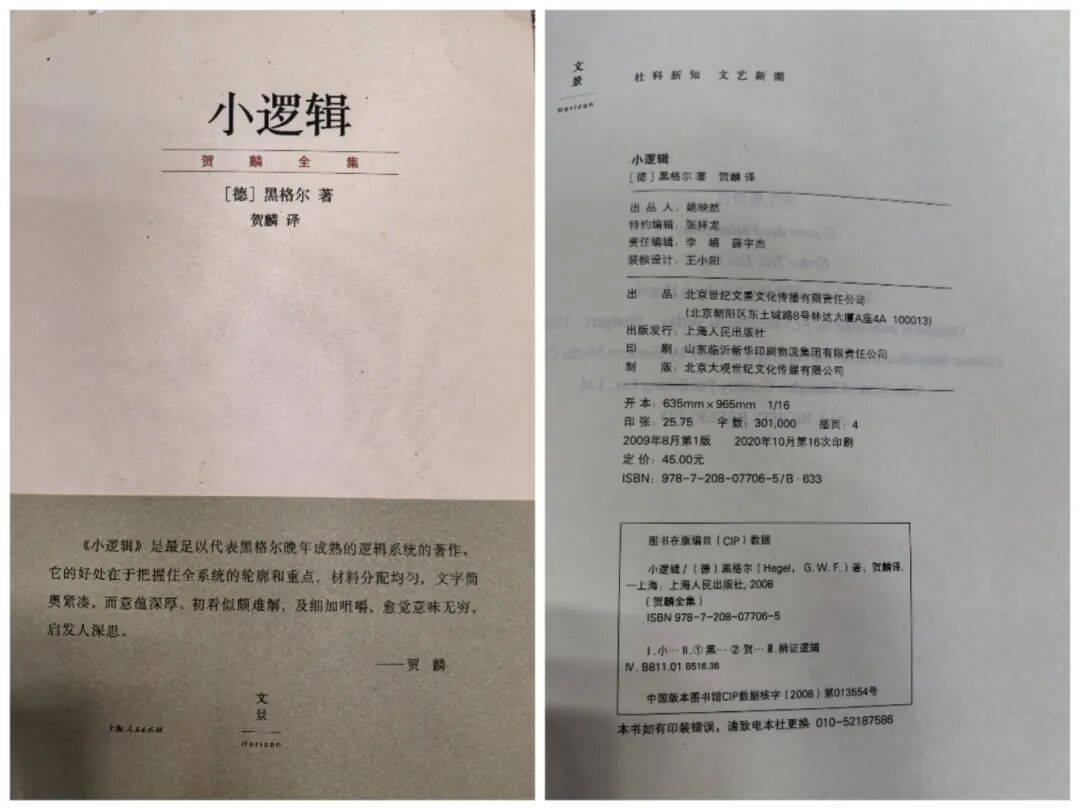 有学者说,在学界,只要提到黑格尔的《小逻辑》(1817年出版),就会想到它的中文译者——已故著名哲学家、教育家、翻译家、黑格尔哲学专家贺麟;而一提到贺麟,也就会首先想到他的脍炙人口的权威性译著《小逻辑》。