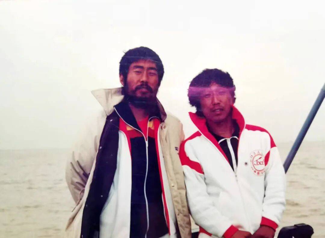 王茂军(左)与李维民漂至上海吴淞口时合影(李维民 供图)