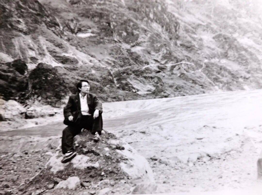 终于等来了一位姓杨的向导,他领着我们穿越不断有石头滚落的滑坡区,忽上高坡,忽下深涧。我的旅游鞋、裤腿再一次湿透。身上的汗水干了又湿,湿了又干。现在想来,那时真是年轻身体好啊,无论怎么折腾,就是不会感冒生病。