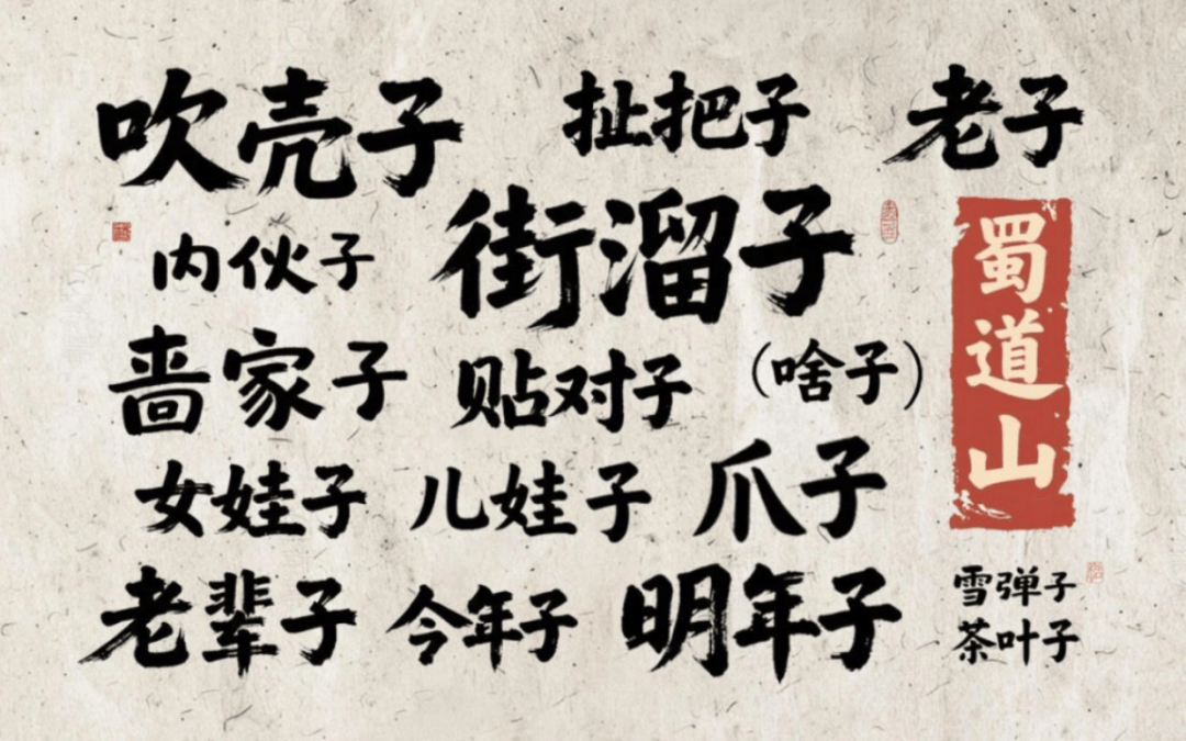 四川方言充满着许多具有地域特色和人文特色的词汇,不乏生动活泼的词缀,“子”是其中最为常见的后缀之一。在四川,万物皆可“子”,由此形成了许多特色词汇。