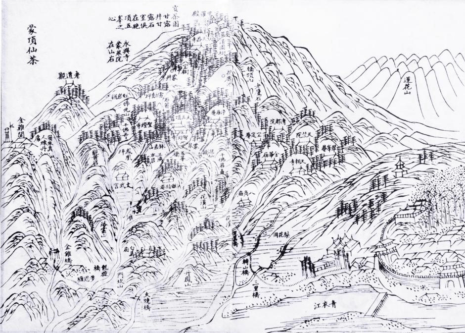 “蒙者沐也,言雨露濛沐,因以为名。山顶受阳气全,其茶芳香。”西汉甘露年间(前53-50),吴理真在蒙山种茶,蒙山由此成为我国有文字记载的人工种茶最早的地方,吴理真被誉为“世界植茶始祖”。南宋孝宗淳熙十三年(1186),名山进士喻大中上奏吴理真种茶“上裕国赋,下裨民生”,孝宗赐封吴理真为“甘露普慧妙济大师”。宋光宗绍熙三年(1192),在蒙山甘露井侧立“甘露祖师像”石碑,石刻“甘露祖师形状”,两侧刻联“形归露井灵光灿,手植仙茶瑞叶芬”。清雍正年间,雅安生员马伟平在蒙山立《天下大蒙山》碑,记载了茶祖吴理真种茶蒙顶的史实。