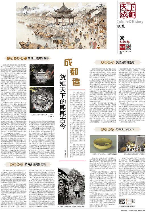 从巧夺天工的“四大名旦”到沿古道飘香的蜀茶,古代“成都造”的魅力,源于其将实用之美与生活之智完美融合的匠心。它们不仅是行销四海的商品,更是流淌在成都城市血脉中的创新基因与商业精神。昔日,这份匠心通过丝路与古道抵达远方;今日,它正转化为驱动现代产业发展的内核动力。成都的繁华故事,是一部关于创造、流通与超越的史书,至今仍在续写新的篇章。