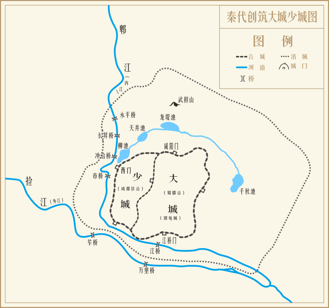 秦代创筑大城少城图(图源:成都方志)