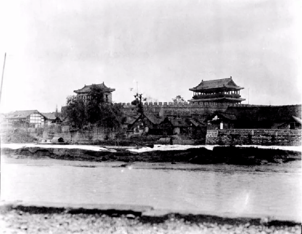 成都南河和南门城楼(浣溪楼)(西德尼·甘博摄于1917年夏,图源:方志四川)