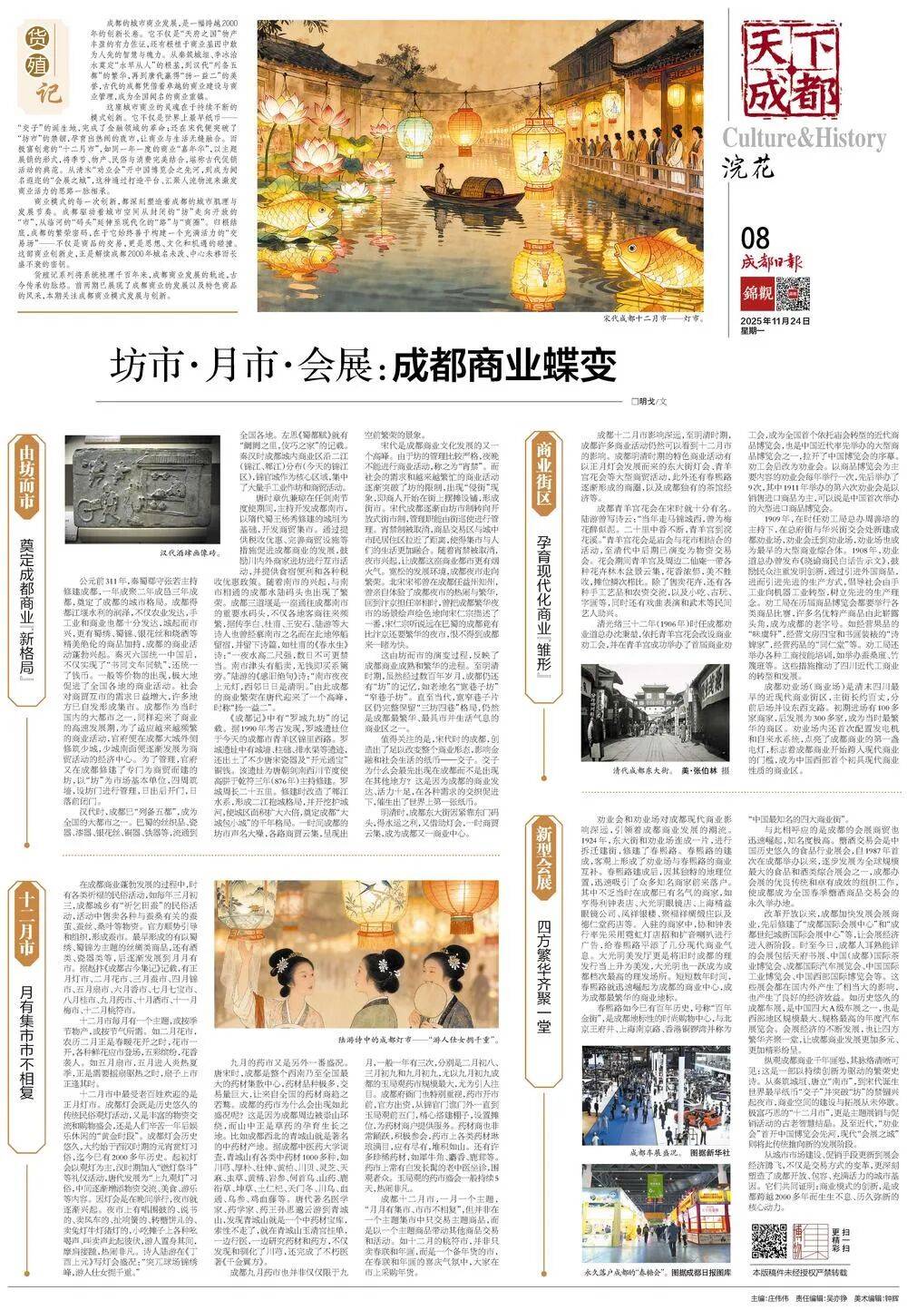 从城市市场建设、促销手段更新到展会经济腾飞,不仅是交易方式的变革,更深刻塑造了成都开放、包容、充满活力的城市基因。它们共同证明:商业模式的创新,是成都跨越2000多年而生生不息、历久弥新的核心动力。